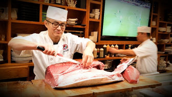 On the right side, you will see the traditional sushi bar concept. It is ideal for guests who want to enjoy a quick meal like a chirashi and get back to work or for those who want to sit by the sushi bar and converse with our friendly sushi chefs.